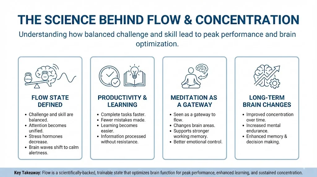 Tags: meditation, focus improvement, productivity habits, concentration techniques, flow state, mindfulness practice